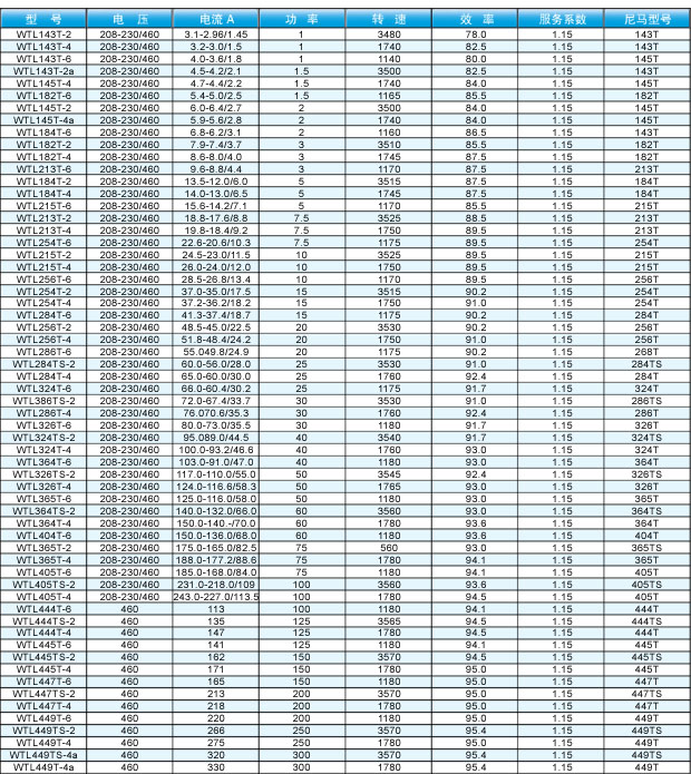 NEMA高效電機型號: